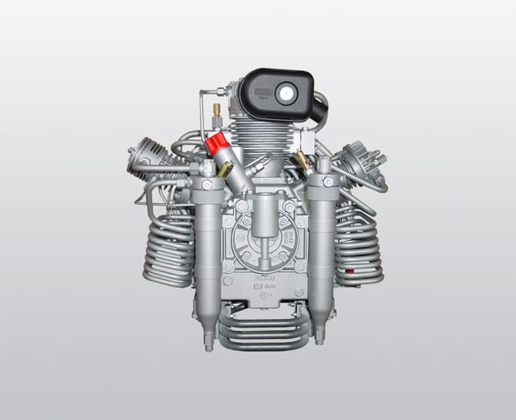 Die gegenüberliegenden Verdichterstufen der Kompressorblöcke gewährleisten optimale Laufruhe und hohen Wirkungsgrad. Die freistehenden Zylinder sind sehr gut zugänglich und leicht zu warten. Mehr dazu
